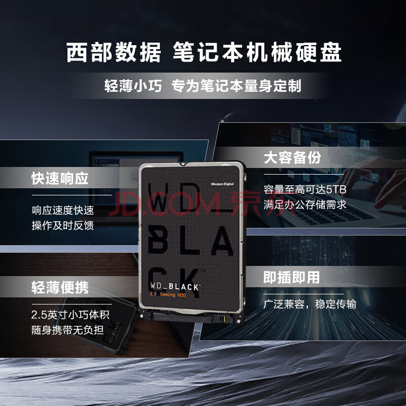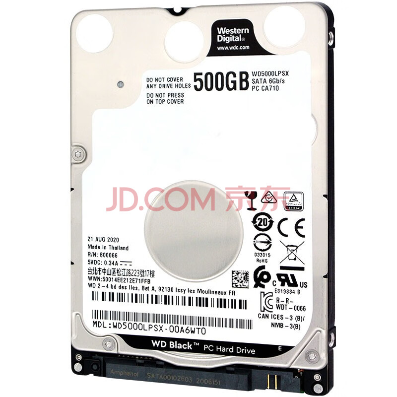 商品相册:西部数据(WD)500GB 笔记本游戏机械硬盘 WD_BLACK 西数黑盘 SATA 7200转64MB 2.5英寸WD5000LPSX第