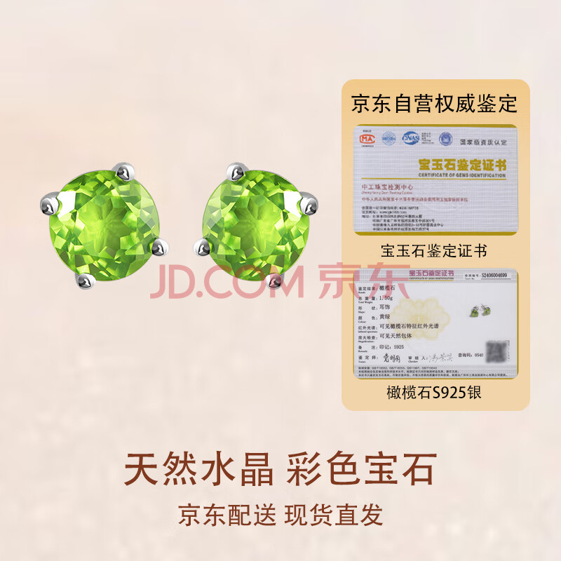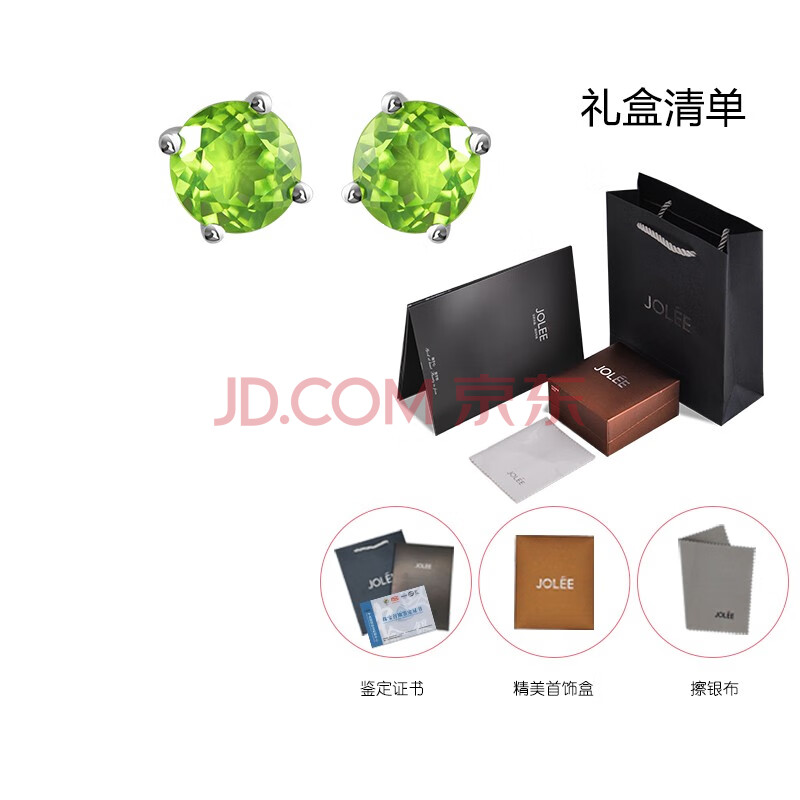 商品相册:JOLEE耳钉翠绿橄榄石S925银情侣款耳针时尚饰品送女生节日礼物一物一证第