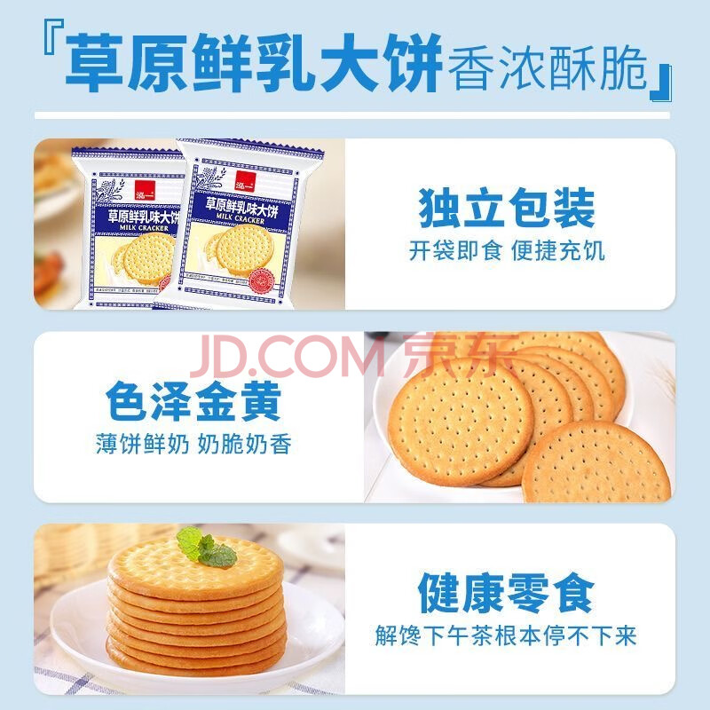 商品相册:泓一草原鲜乳大饼干800g 早餐饼干休闲零食饱腹代餐解馋充饥牛乳味第