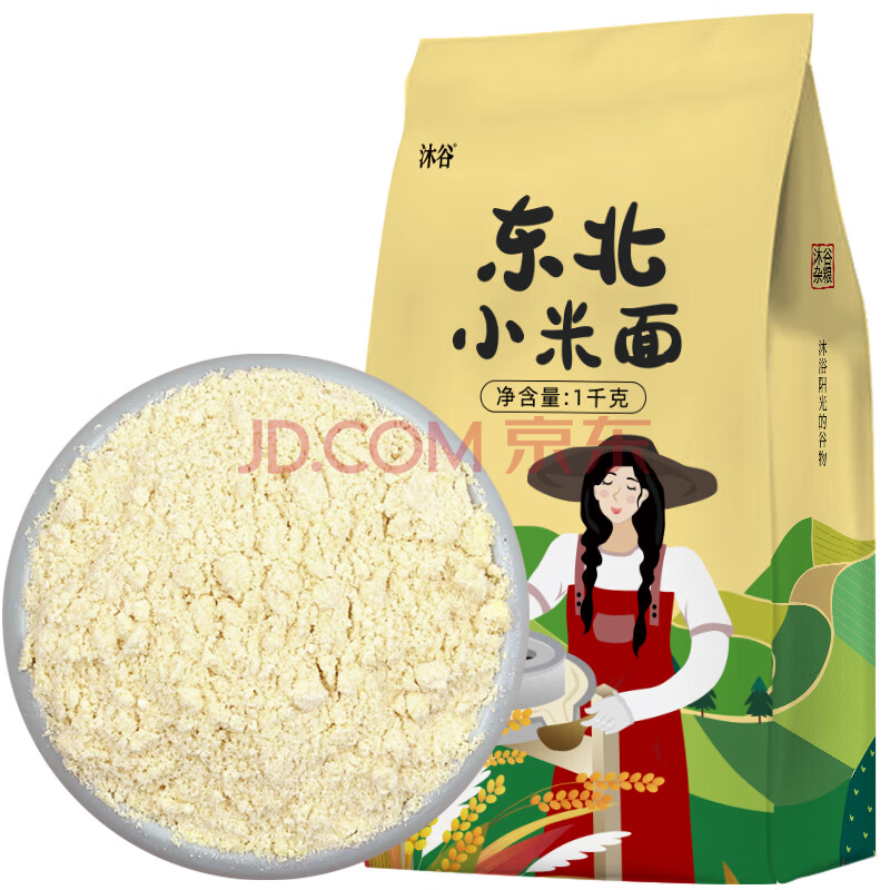 商品相册:沐谷 东北小米粉2斤(石磨纯小米面 粗粮杂粮粉 炸糕窝窝头烘焙原料)第