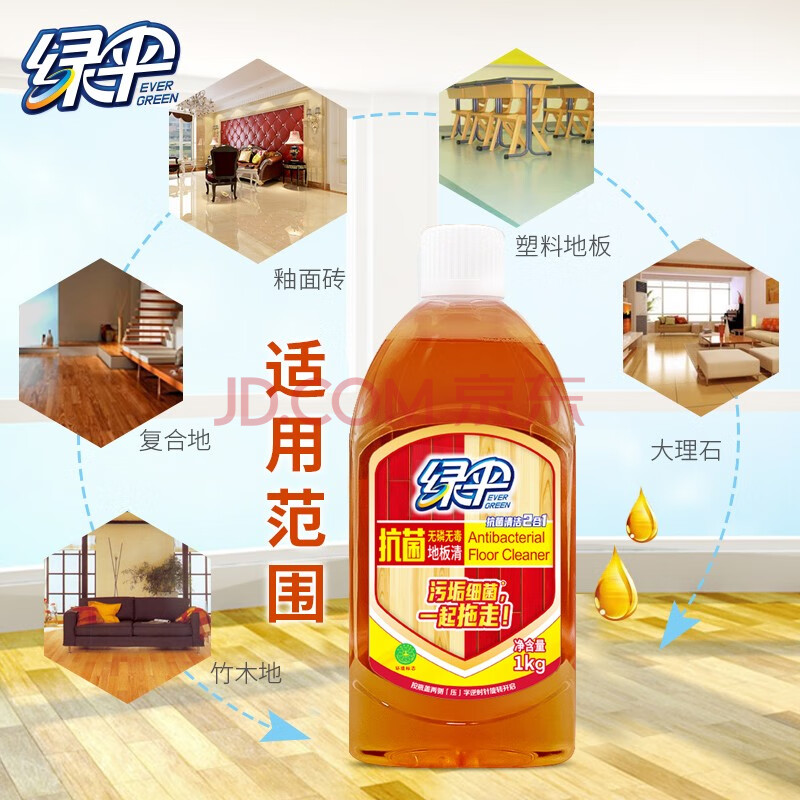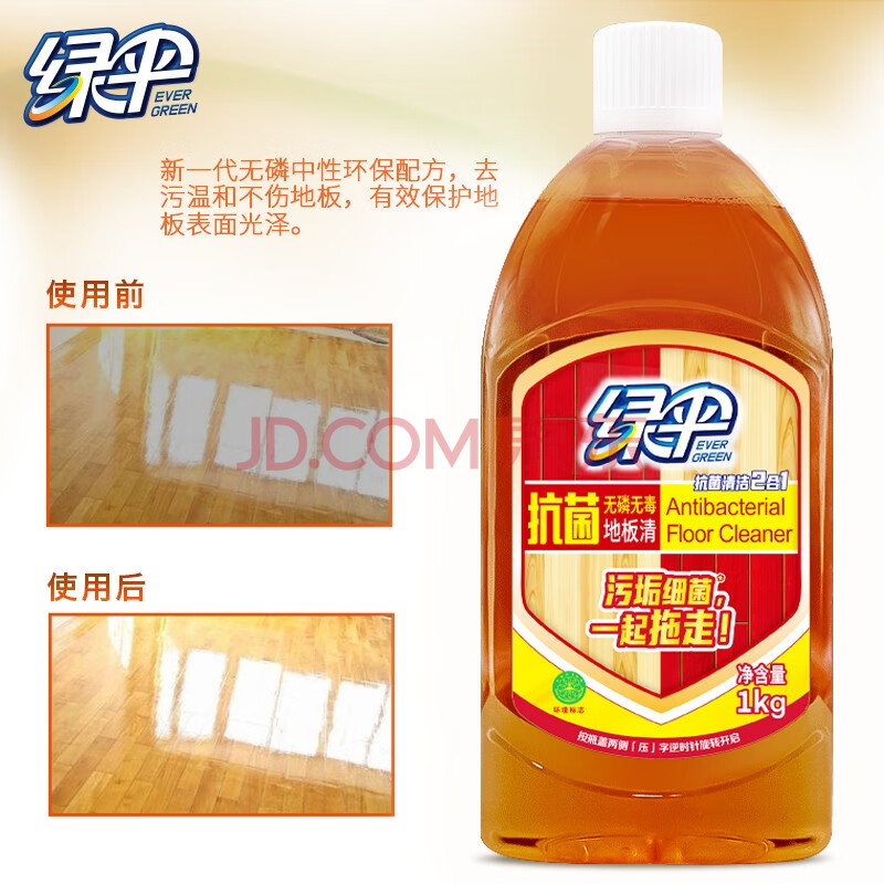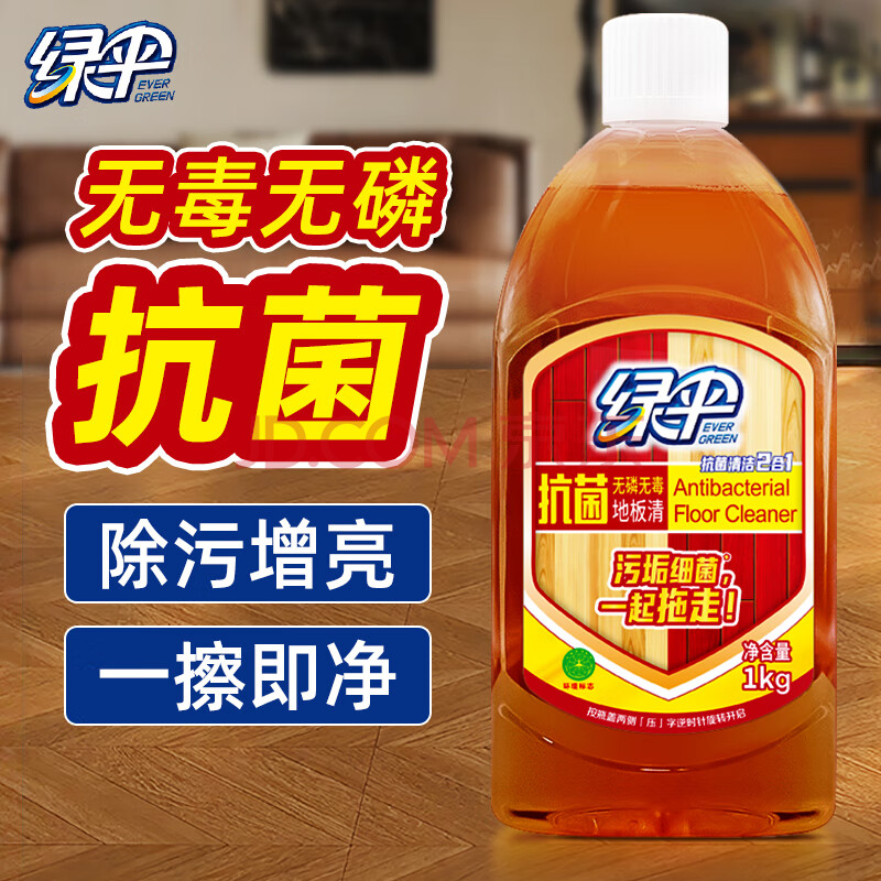 商品相册:绿伞抗菌地板清 实木复合地板大理石瓷砖清洁剂 无毒无磷清洁抗菌 1kg第