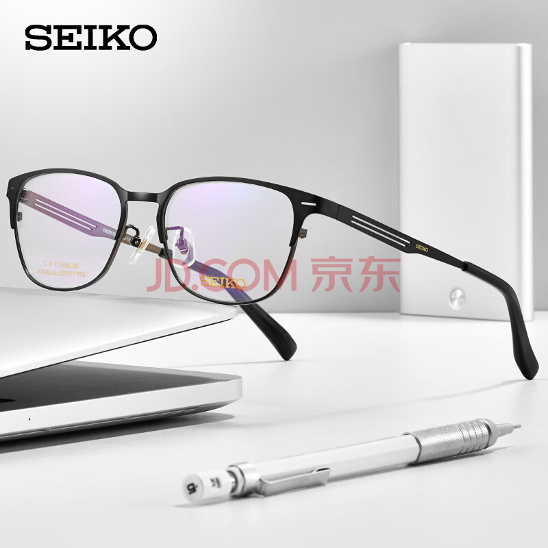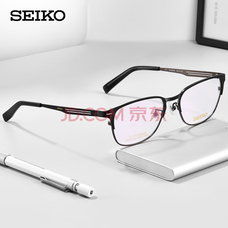 商品相册:精工(SEIKO)眼镜框男款全框钛材休闲近视眼镜架HC1023 164 54mm哑黑色/哑灰色第