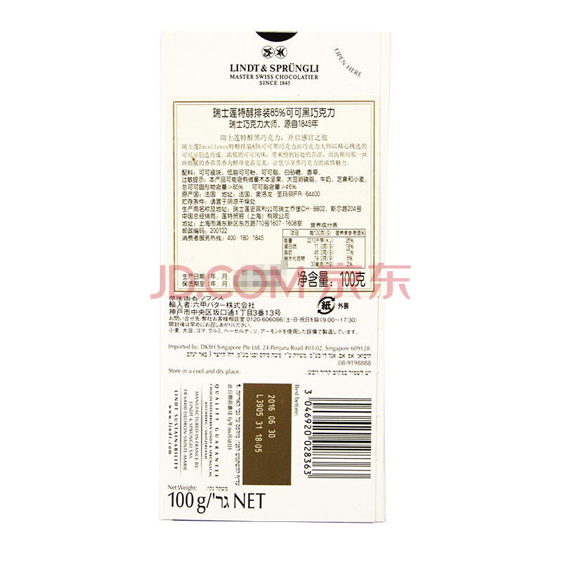 商品相册:瑞士莲【官方正品】特醇排块85%可可100g 黑巧 减脂 零食 生日礼物第