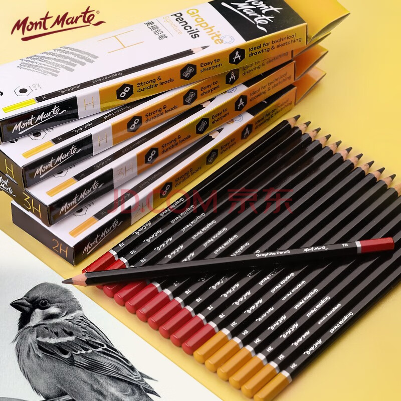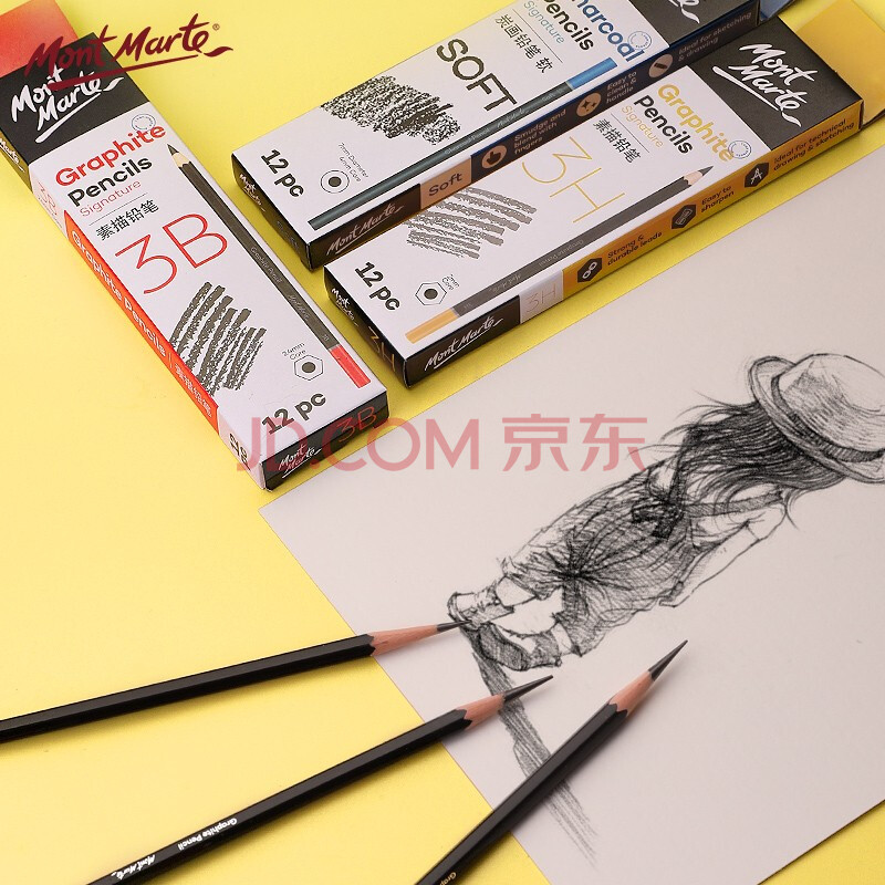 商品相册:蒙玛特(Mont Marte)6b素描铅笔12支盒装 美术绘画炭笔速写笔学生初学素描笔 练习写生画画专用画笔PNX0004美术写生第
