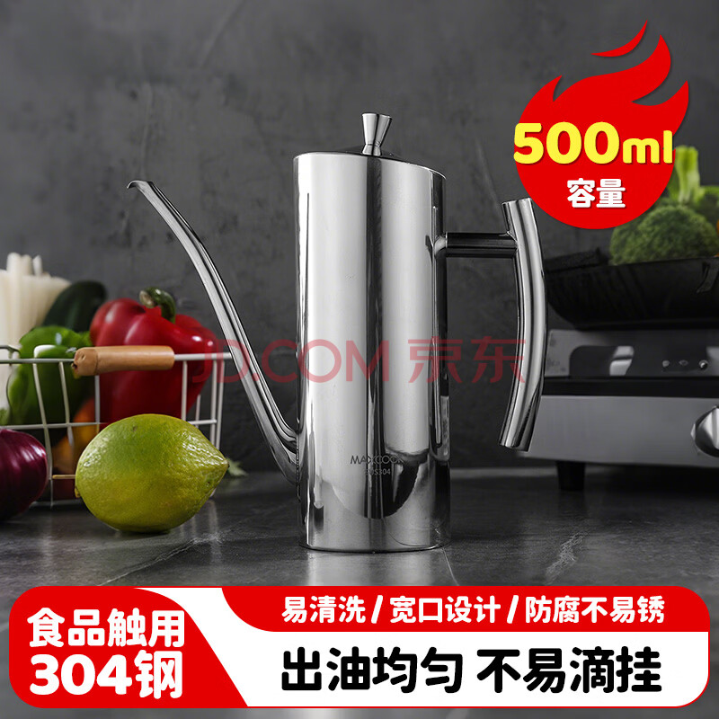 商品相册:美厨(maxcook)油壶304不锈钢油瓶 宽口500ml 大容量调料调味瓶 防漏 MCPJ636第