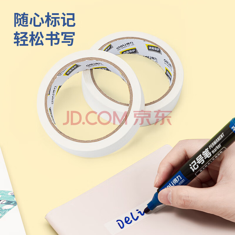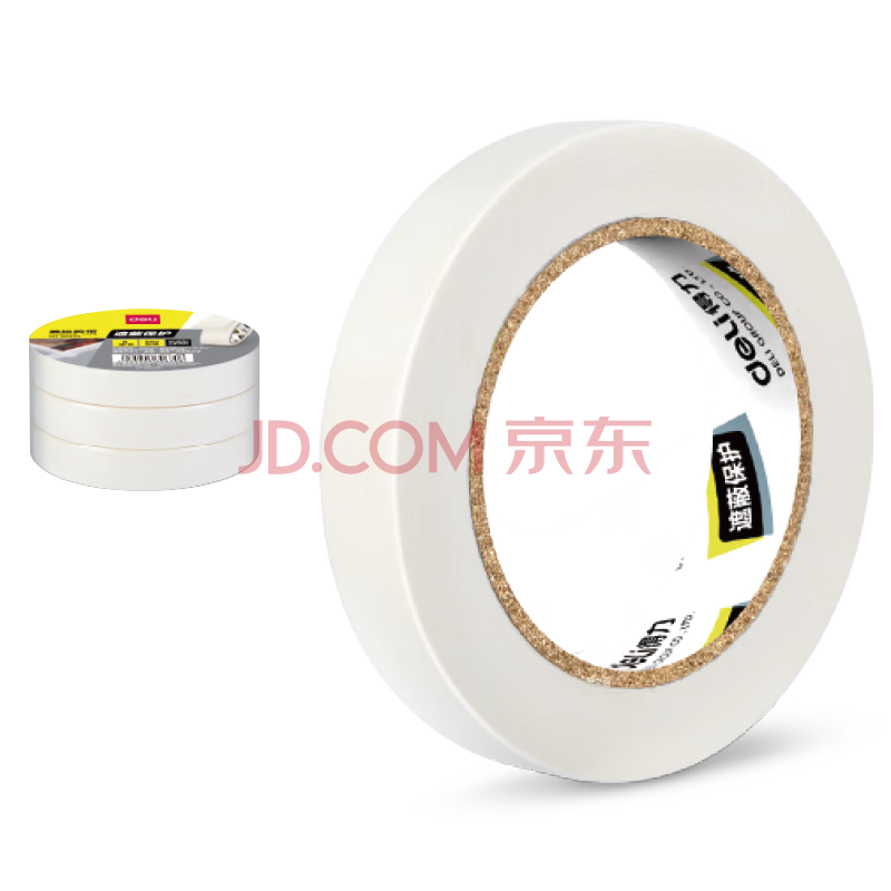商品相册:得力(deli)美纹纸胶带 20mm*50y*145μm 美术美工分色 装修遮蔽美缝贴膜刷漆保护无痕 学习用品 3卷 30668第