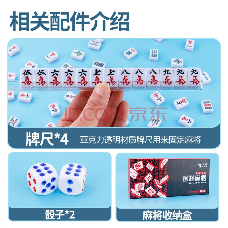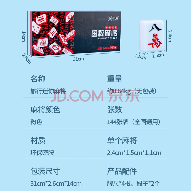 商品相册:紫湖迷你麻将牌便携粉色24mm袖珍户外旅行露营麻将宿舍144张带牌尺第1张/共5