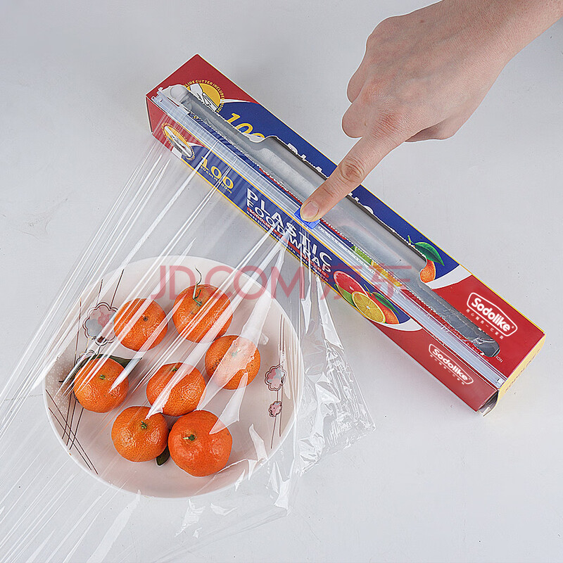 商品相册:Sodolike尚岛一次性耐高温保鲜膜带滑刀100米*30cm盒装易撕取PE微波炉冰箱第