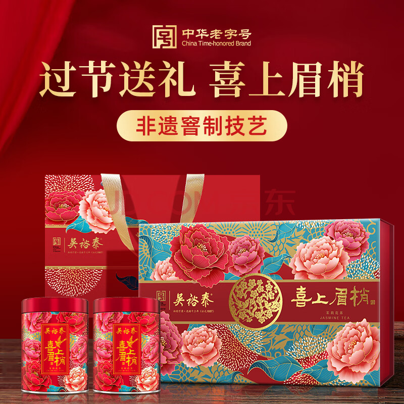 商品相册:吴裕泰茉莉花茶 喜上眉梢 300g 浓香特种 老字号 送礼茶叶送礼茶礼盒第