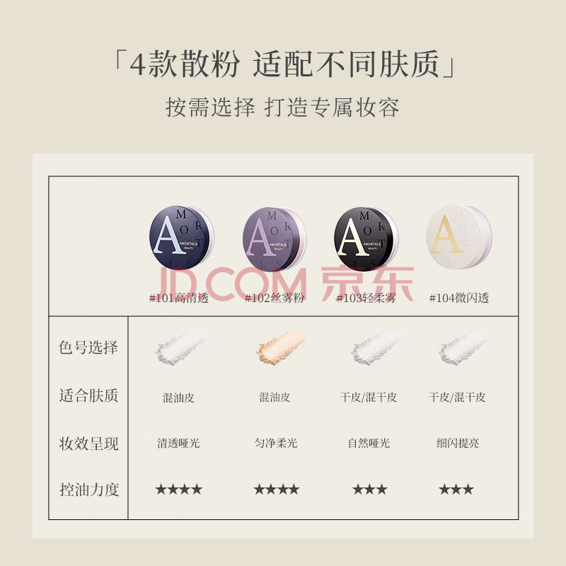 商品相册:尔木萄(AMORTALS)高清丝雾定妆散粉102丝雾肤清爽控油定妆不易脱妆节日礼物第
