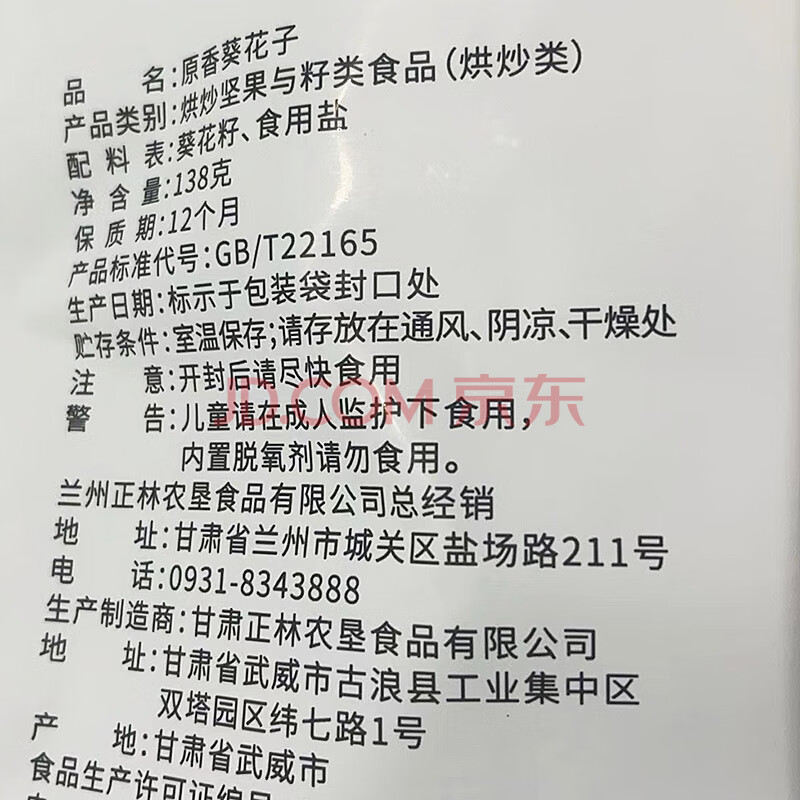商品相册:正林原香葵花子138g/袋坚果炒货休闲零食小吃(新旧包装随机发货)第