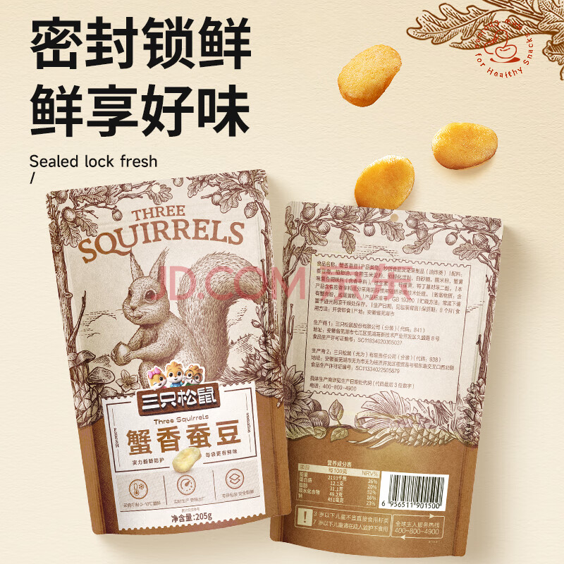 商品相册:三只松鼠蟹香蚕豆 蟹黄味坚果炒货休闲零食小吃205g/袋第1张/共9