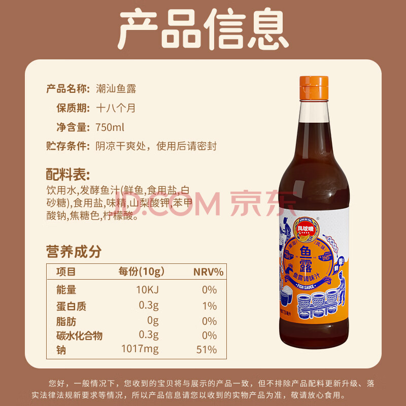商品相册:凤球唛鱼露750ml潮汕风味 【可代替盐】鱼酱油冬阴功增香提鲜调味料第