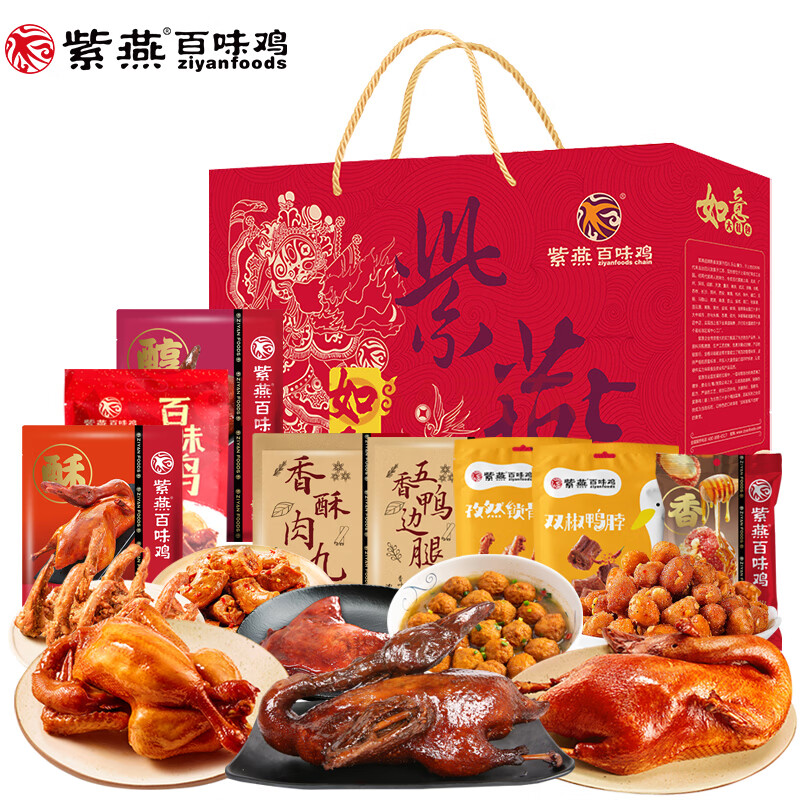 商品相册:紫燕百味鸡三八妇女神节物礼盒纯肉食熟卤味烤鸭送礼下酒预制爱尚回家2142g第