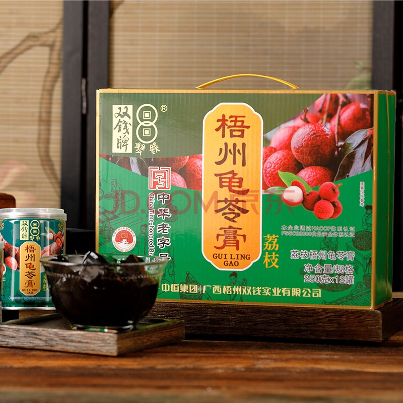 商品相册:双钱牌牌 荔枝梧州龟苓膏 250g *12罐 礼盒装 中华老字号 送礼佳品第1张/共7