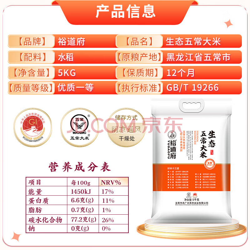 商品相册:裕道府生态五常大米10斤 当季新米 自营(东北大米 十斤)第