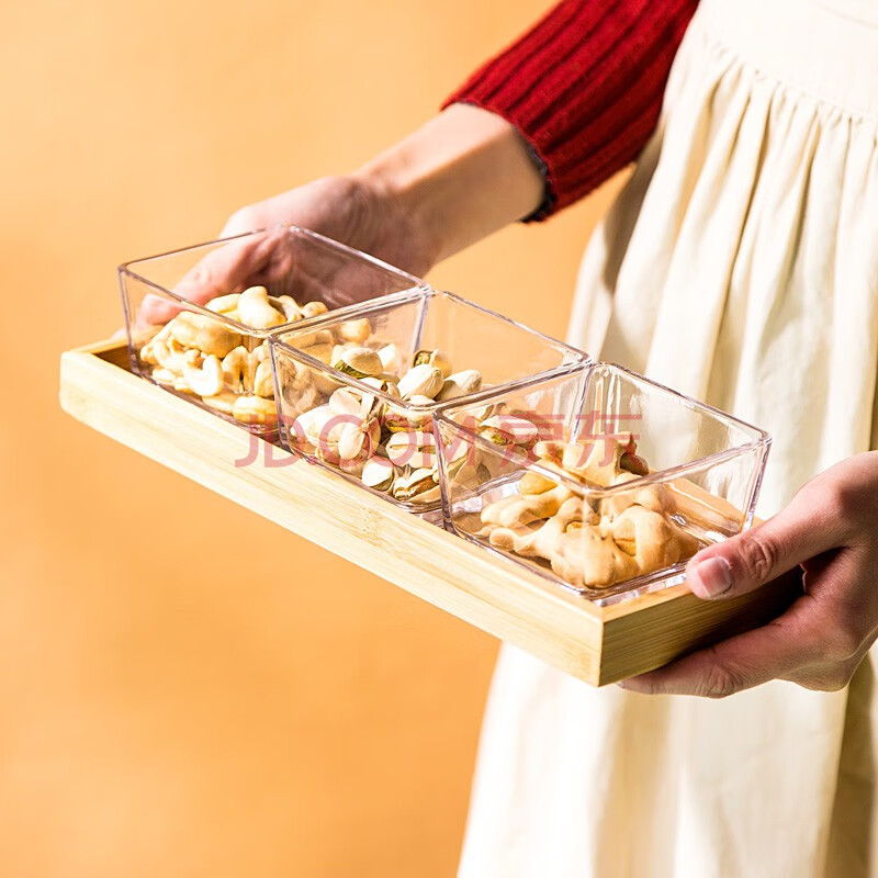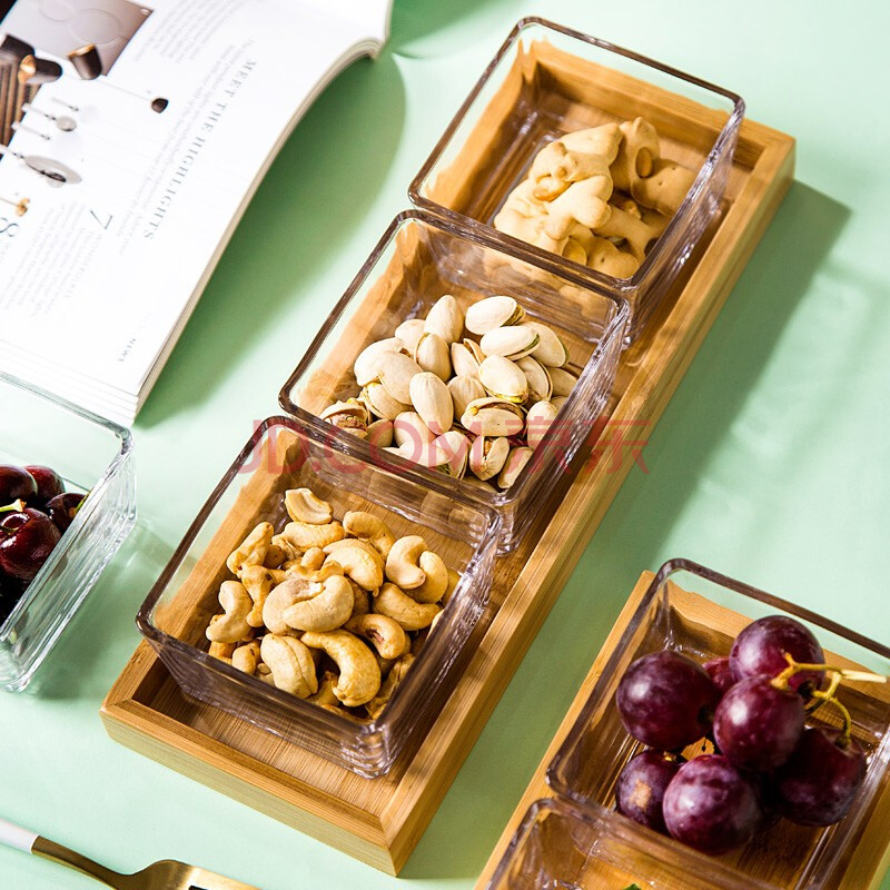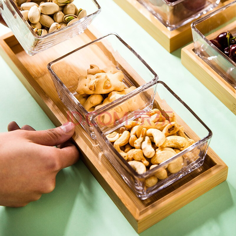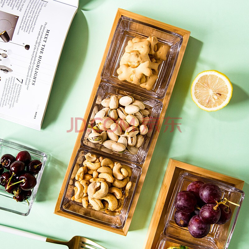商品相册:友来福点心盘欧式简约玻璃水果盘方形收纳盒零食糖果家用客厅带托盘三格第