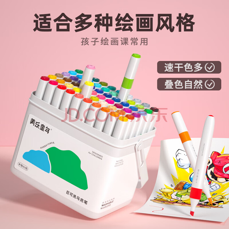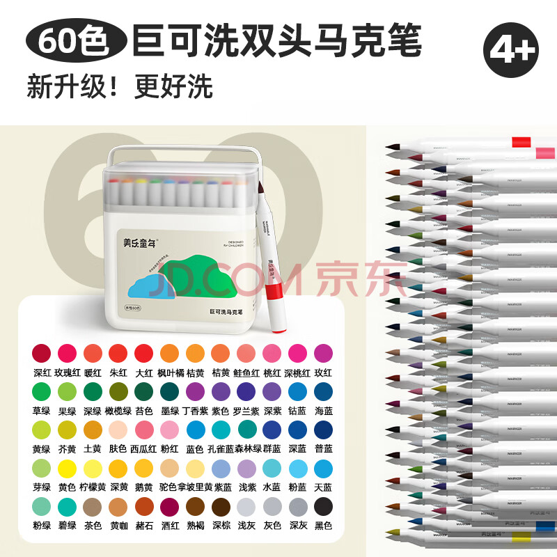 商品相册:美乐童年水性马克笔60色儿童水彩笔画笔无毒双头6-9岁男孩女孩生日礼物第