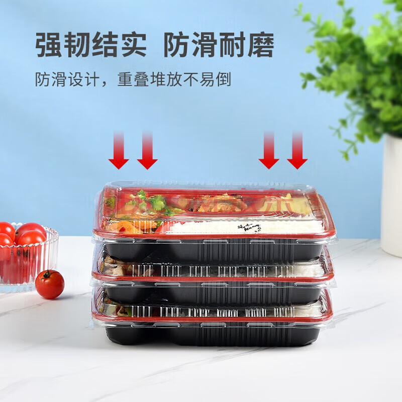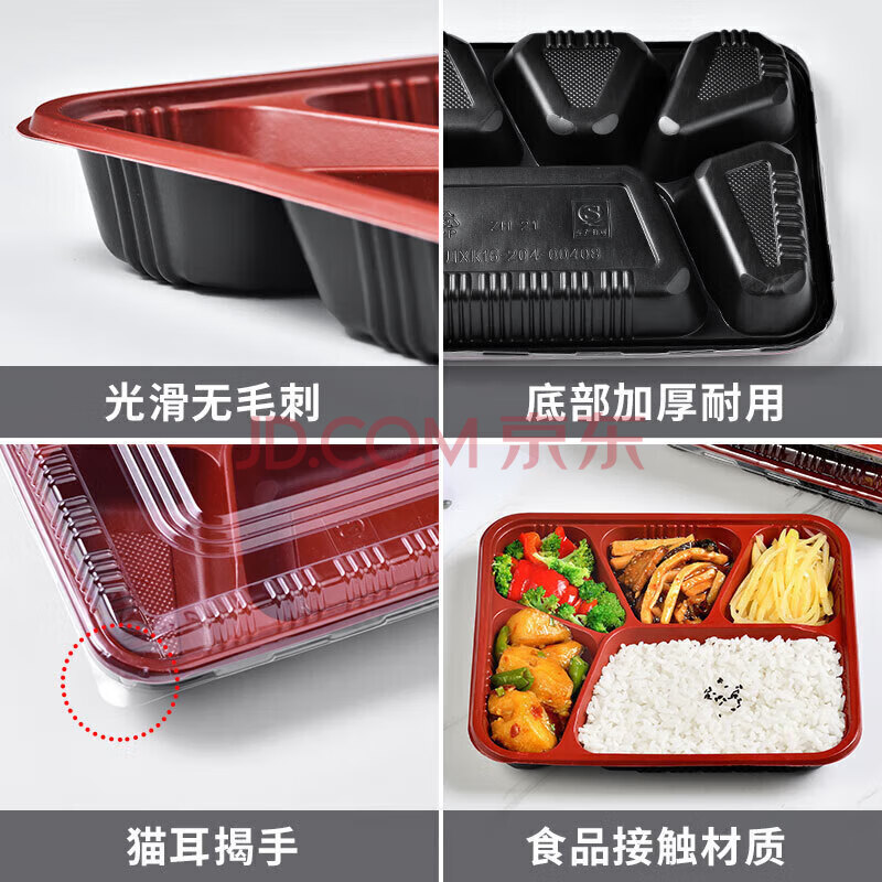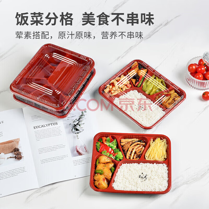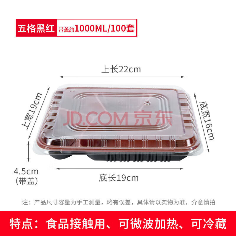 商品相册:特美居一次性饭盒5格餐盒打包盒外卖快餐盒分格饭盒1000型100套带盖第1张/共7
