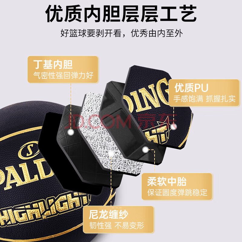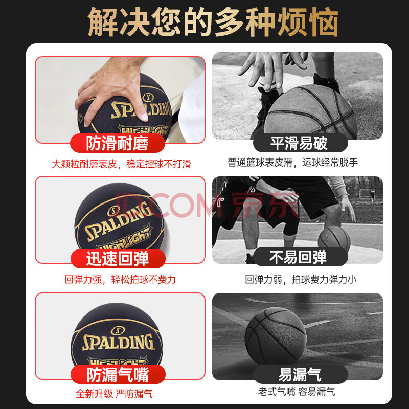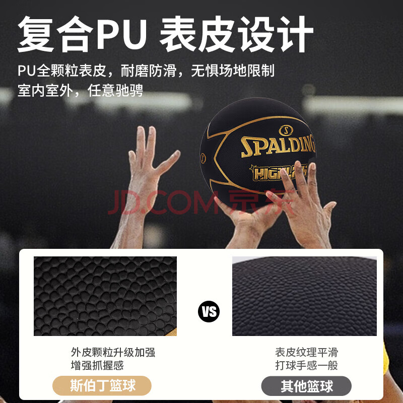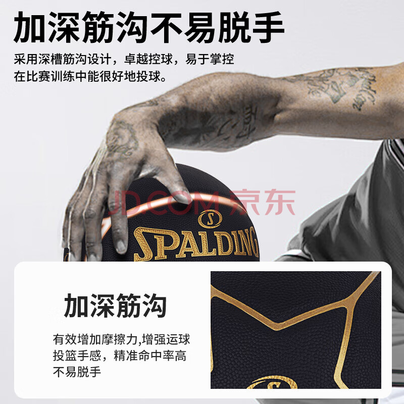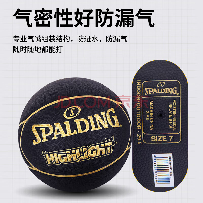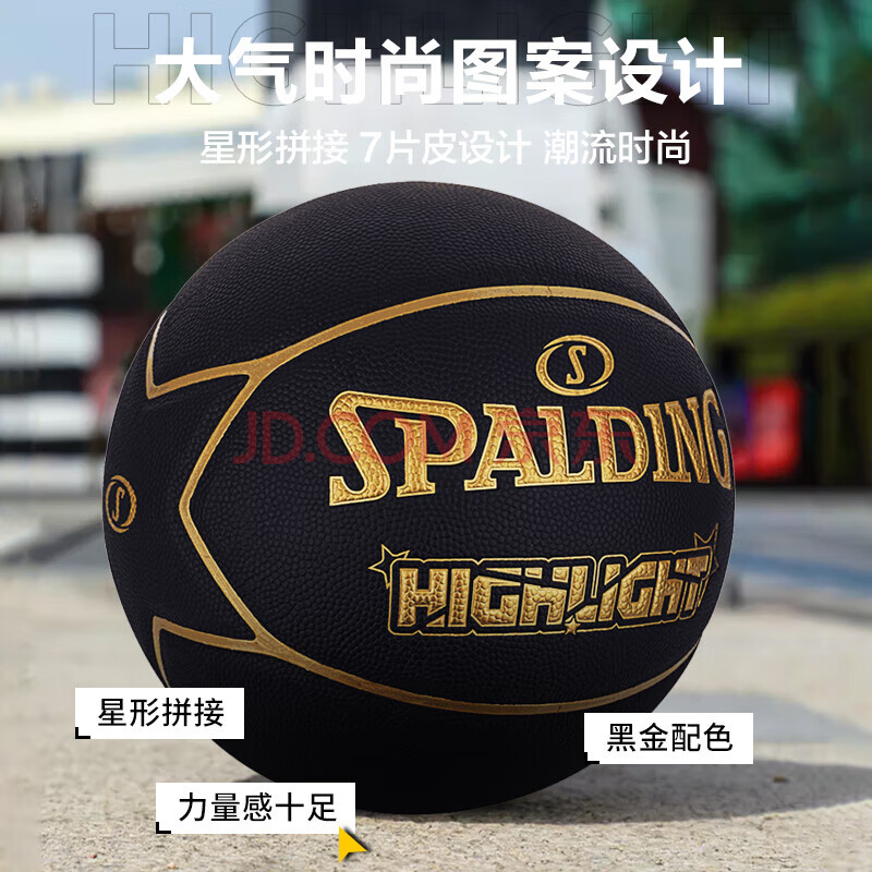 商品相册:斯伯丁(SPALDING)SPALDING黑金比赛篮球星型PU7片拼接室内外比赛用球76-869Y第