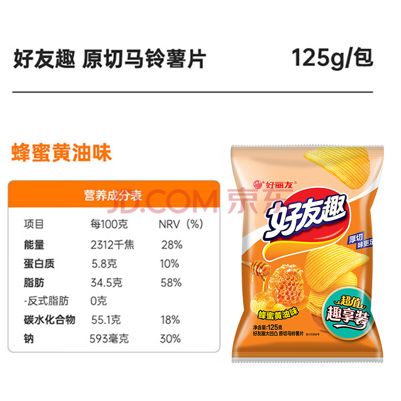 商品相册:好丽友(ORION)好友趣大凹凸蜂蜜黄油味125g 休闲零食 薯片膨化食品解馋小吃第