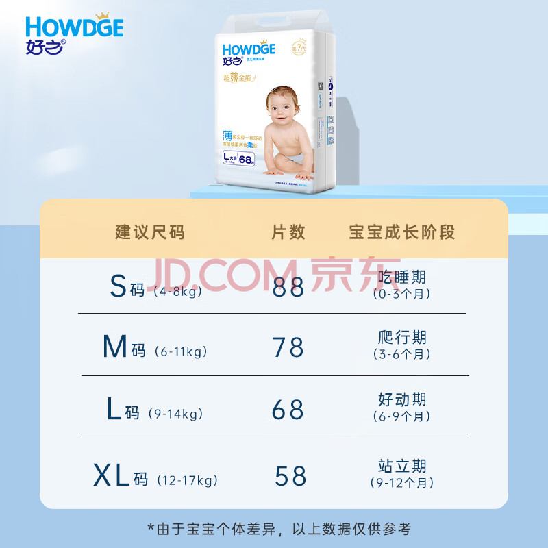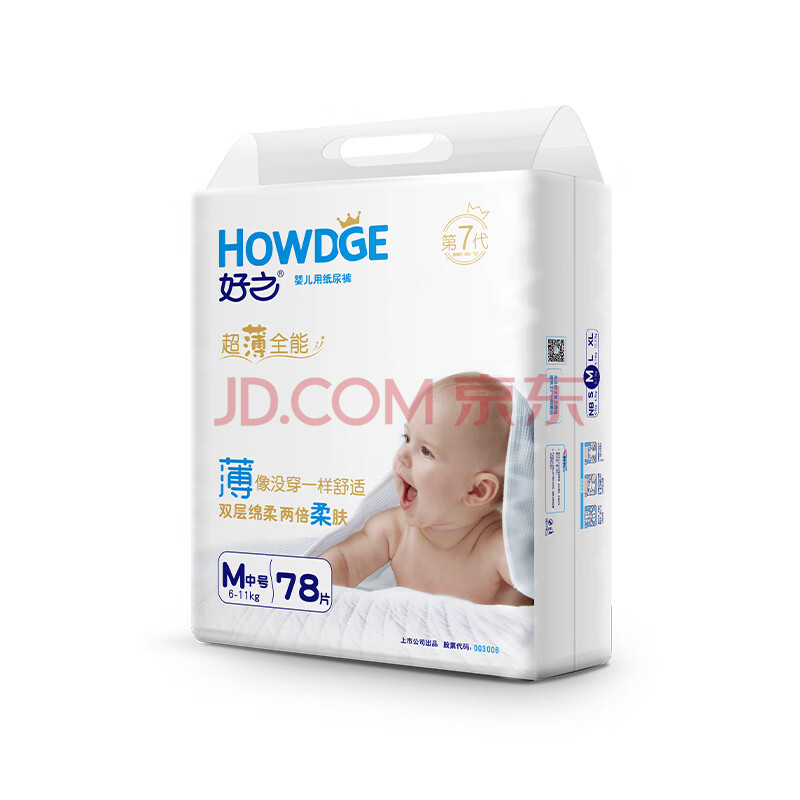 商品相册:好之【品牌直供 安心品质】超薄全能超市同款纸尿裤M78片【6-11kg】第1张/共8