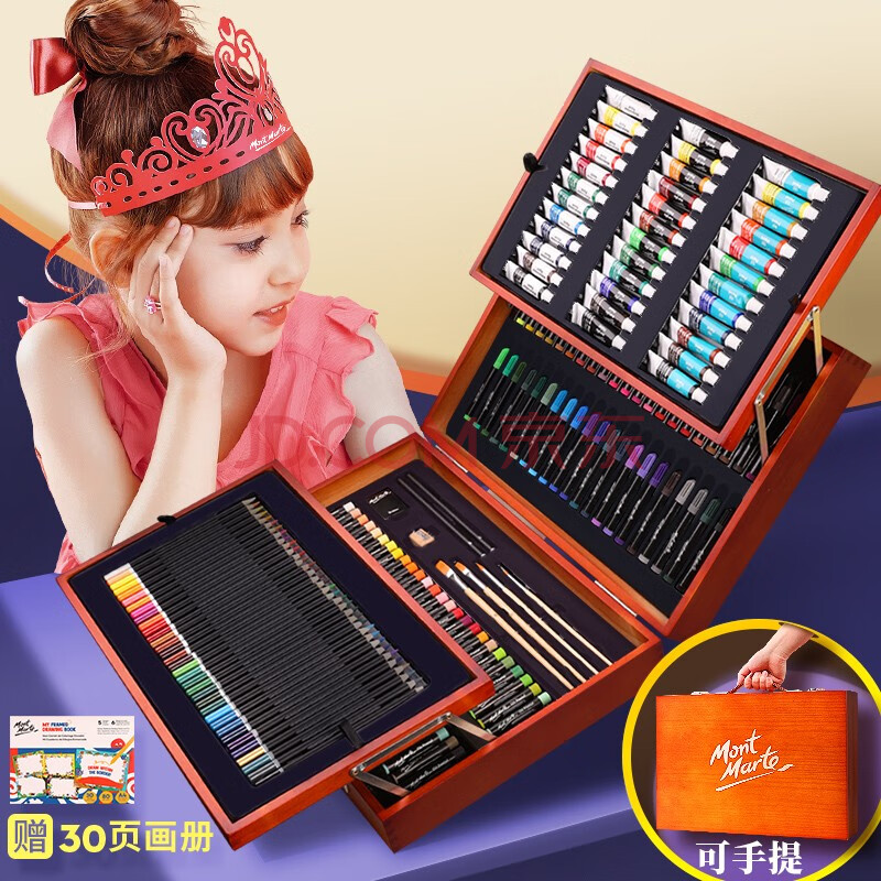 商品相册:蒙玛特MontMarte儿童绘画礼盒画画颜料蜡笔画笔礼盒174件木盒装马克笔文具礼盒女孩生日礼物年货新年礼物第