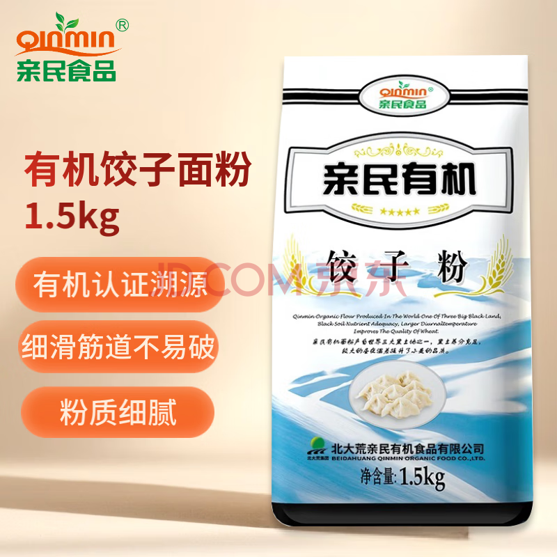 商品相册:亲民食品北大荒有机饺子粉3斤 饺子馄饨专用面粉中高筋力皮薄耐煮第