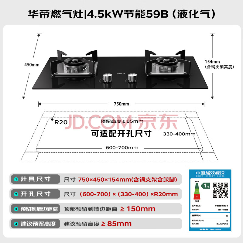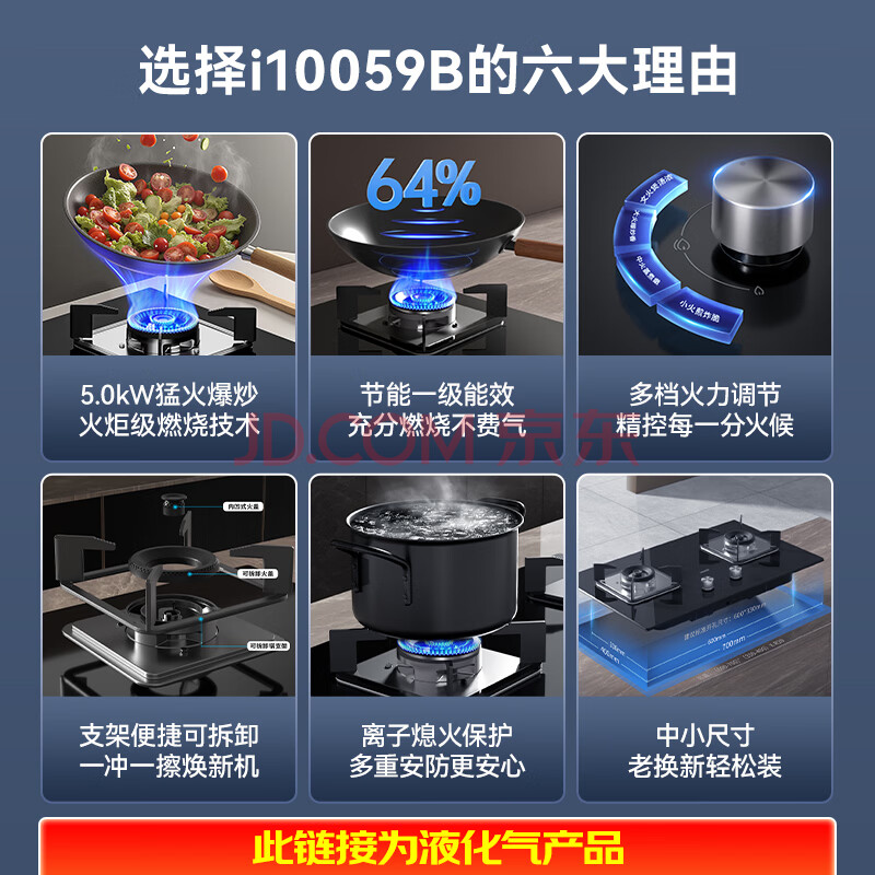 商品相册:华帝家用燃气灶液化气嵌入式双灶4.5kW猛火灶煤气灶双灶台灶具i10059B【液化气商品】第