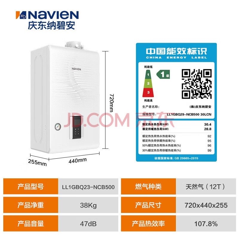 商品相册:纳碧安(Navien) 庆东壁挂炉 超一级能效107.9% 全预混冷凝炉 采暖热水两用燃气壁挂炉 NCB500 30K WIFI第