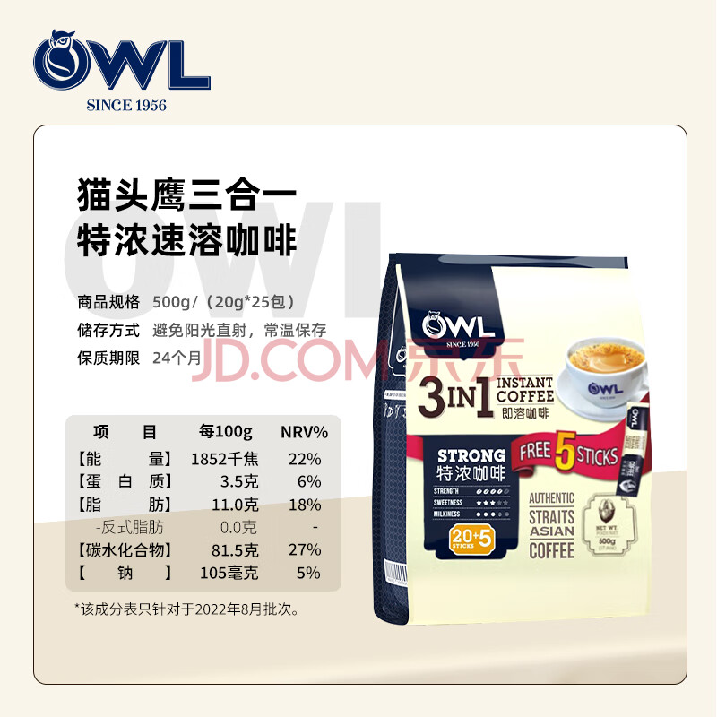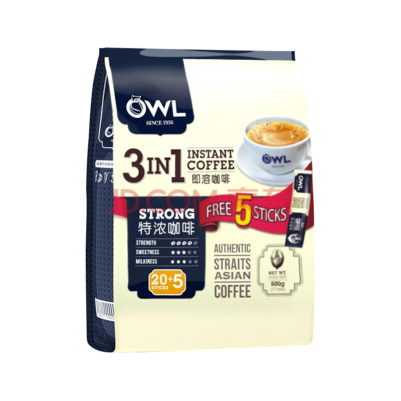 商品相册:猫头鹰(OWL)三合一特浓速溶咖啡粉25杯 马来西亚进口咖啡 冲调饮品第