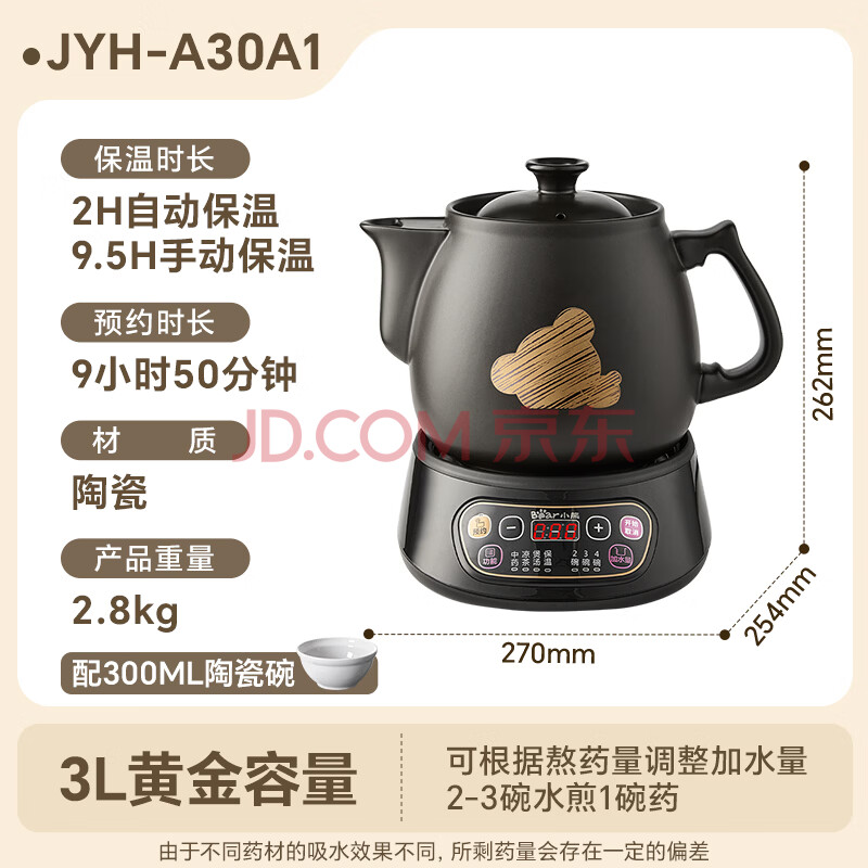 商品相册:小熊(Bear)中药煎药壶 中药锅 熬药电砂锅全自动中药罐 中药煲3升大容量分体式陶瓷 JYH-A30A1第
