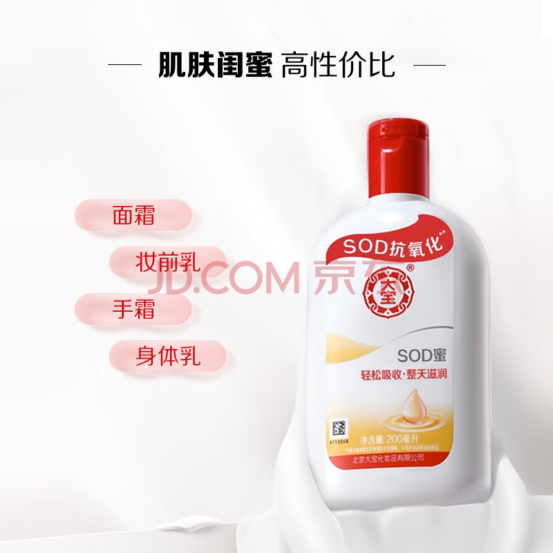 商品相册:大宝SOD蜜青花香型200ml乳液面霜润肤补水保湿擦脸油男女护肤品第