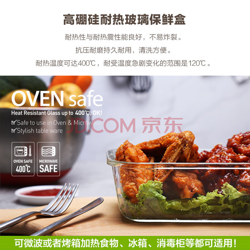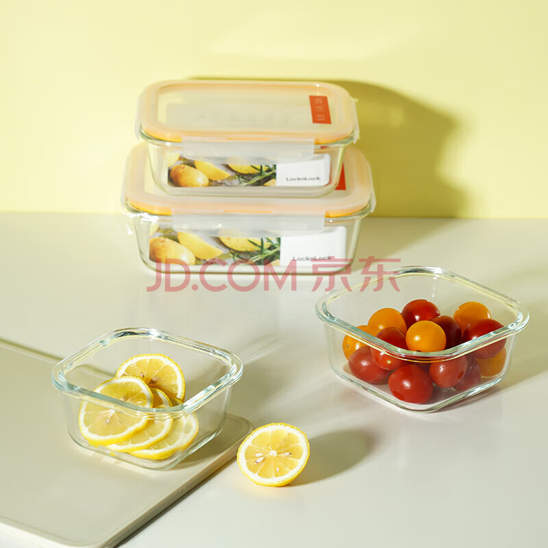 商品相册:乐扣乐扣(LOCK&LOCK)耐热玻璃保鲜盒微波炉饭盒上班学生冷藏上班餐盒水果保鲜盒四件套第