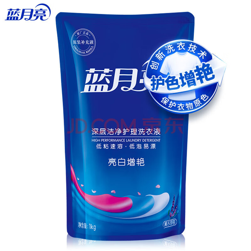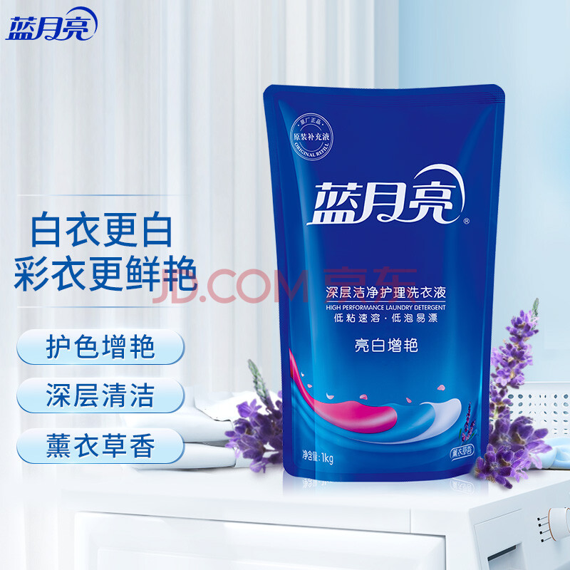 商品相册:蓝月亮 亮白增艳洗衣液 薰衣草香 1kg袋装 护衣护色 强效去渍第
