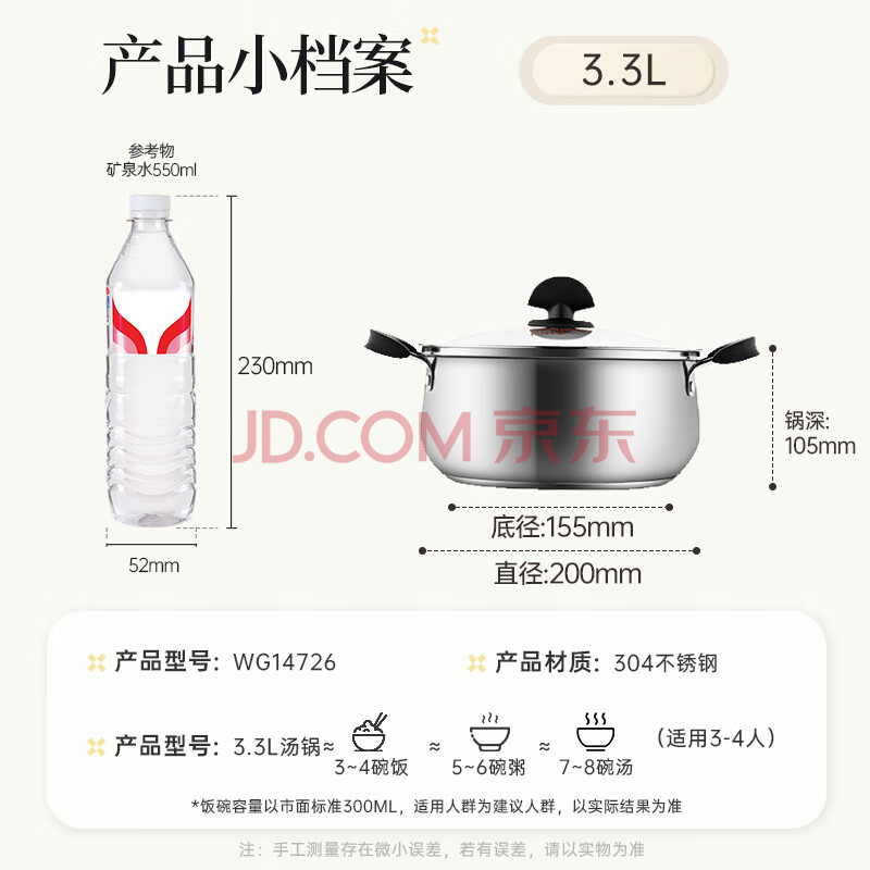 商品相册:炊大皇 汤锅304不锈钢加厚20cm小奶锅煮面无涂层炖汤锅燃气灶电磁炉通用第