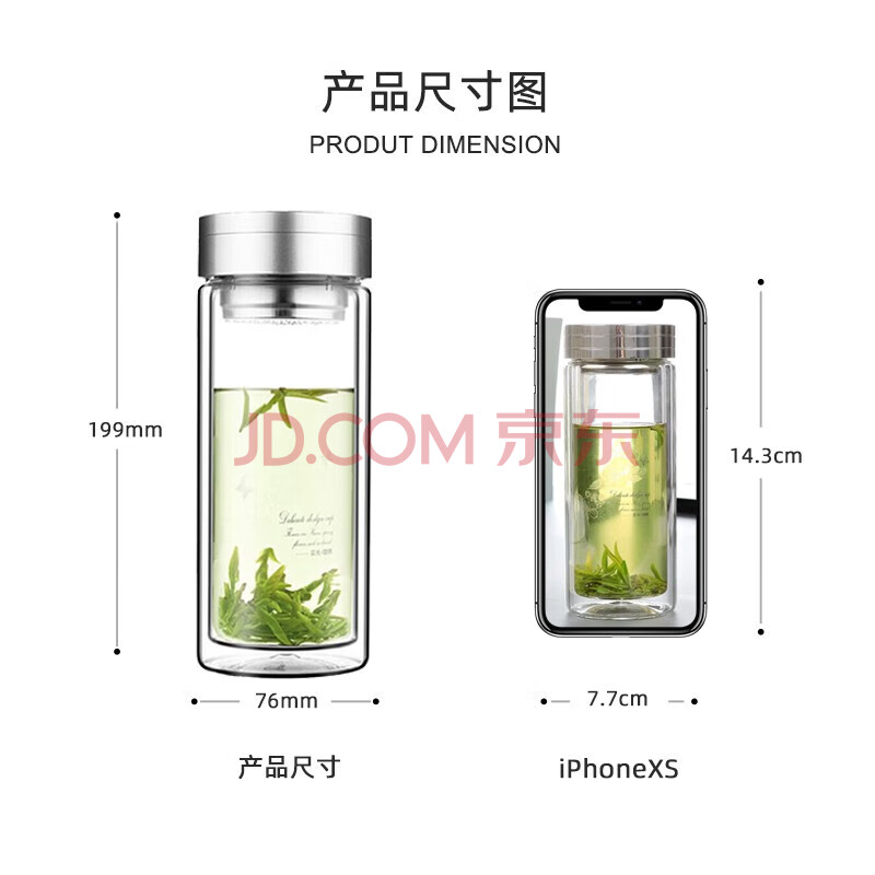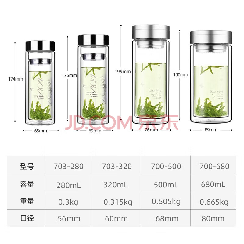 商品相册:富光双层玻璃杯 大容量高硼硅玻璃泡茶杯子 带茶隔商务办公水杯男女士第