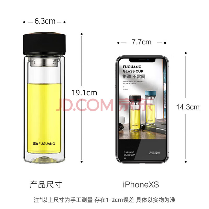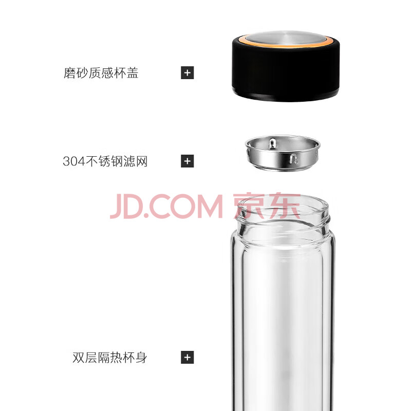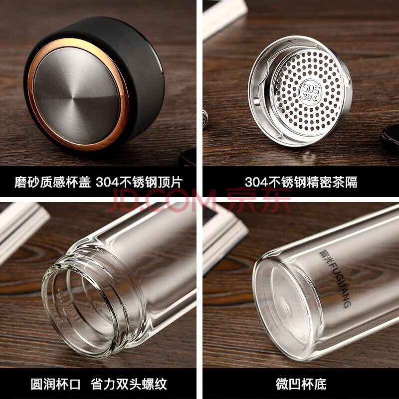 商品相册:富光男女士双层玻璃杯 高硼硅玻璃304茶隔水杯子 带茶隔泡茶杯320ml第