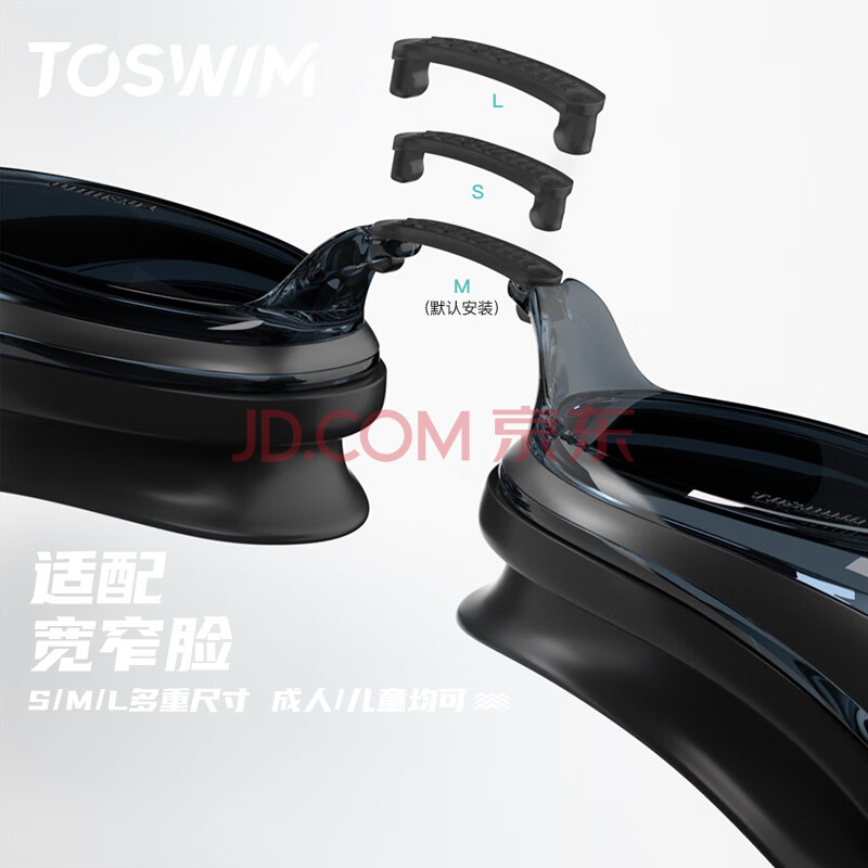 商品相册:TOSWIM拓胜泳镜 防水防雾游泳眼镜高清平光男女大框游泳镜 墨鱼黑第