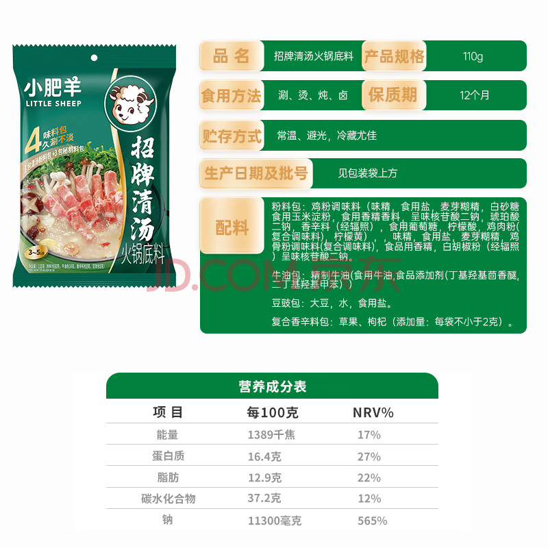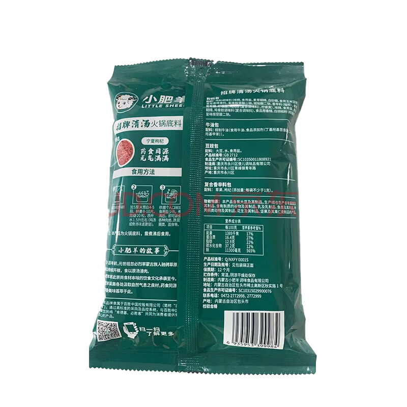 商品相册:小肥羊火锅底料调料清汤滋补 分包式清汤 110g 招牌清汤第