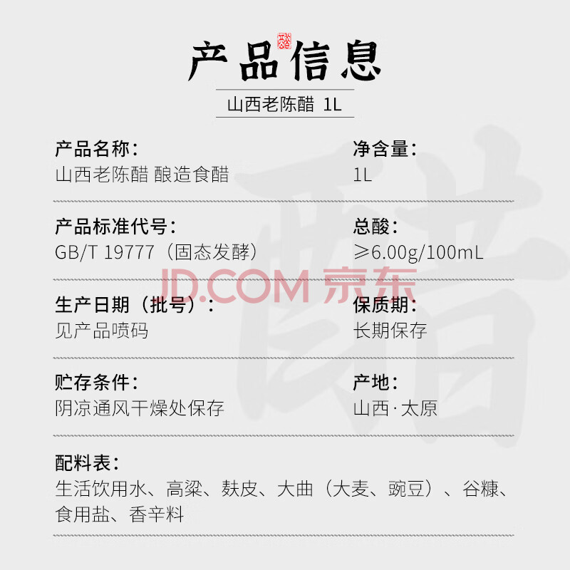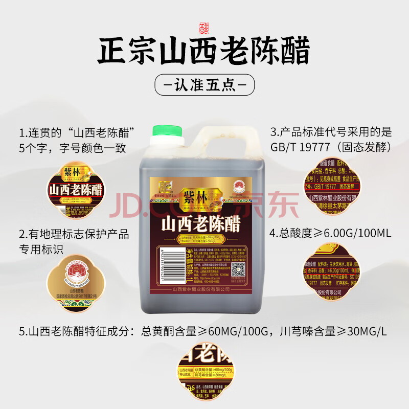 商品相册:紫林醋正宗山西老陈醋6度酸1L山西特产GBT19777长期保存醋泡调味凉拌第
