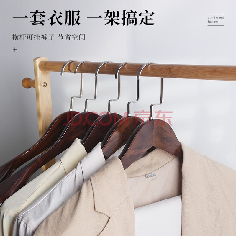 商品相册:洁比世 实木衣架衣服挂宽肩无痕衣挂晾衣架衣撑家用西装大衣服架 3支装第1张/共3