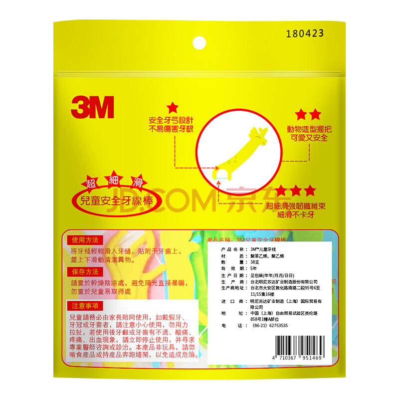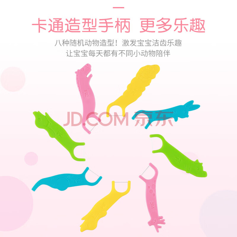 商品相册:3M儿童牙线棒 牙齿牙缝清洁护理 小孩宝宝适用细牙线棒套装共114支第
