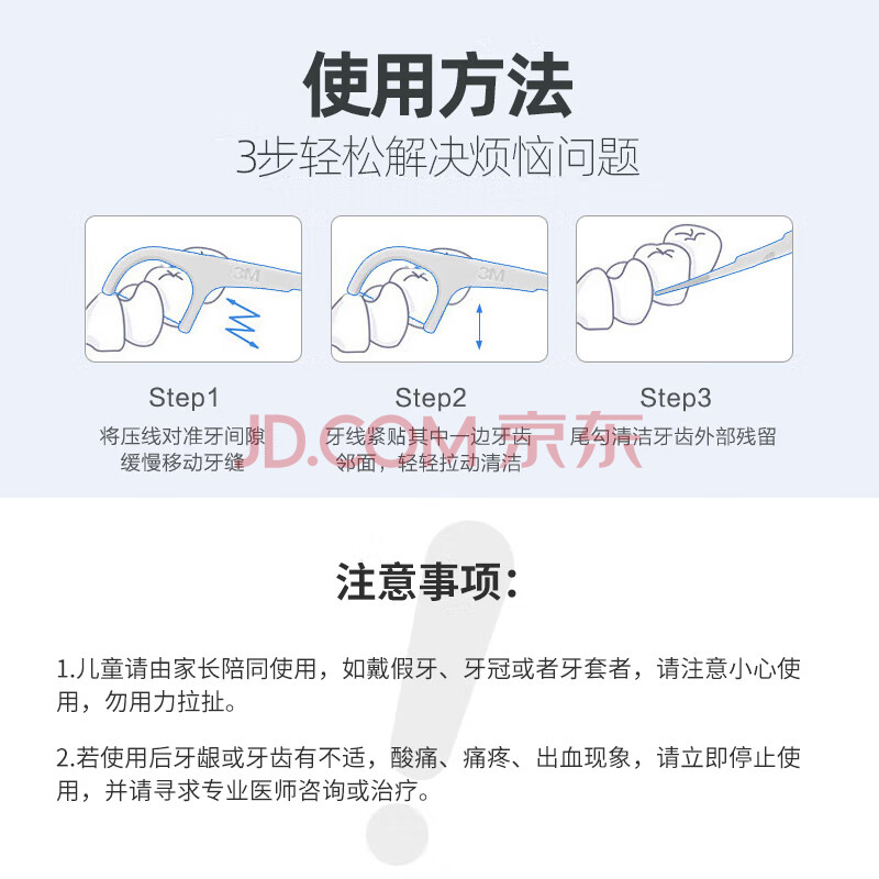 商品相册:3M牙线棒细滑牙线齿间护理牙缝清洁超细牙签 舒适耐用配旅行盒150支第