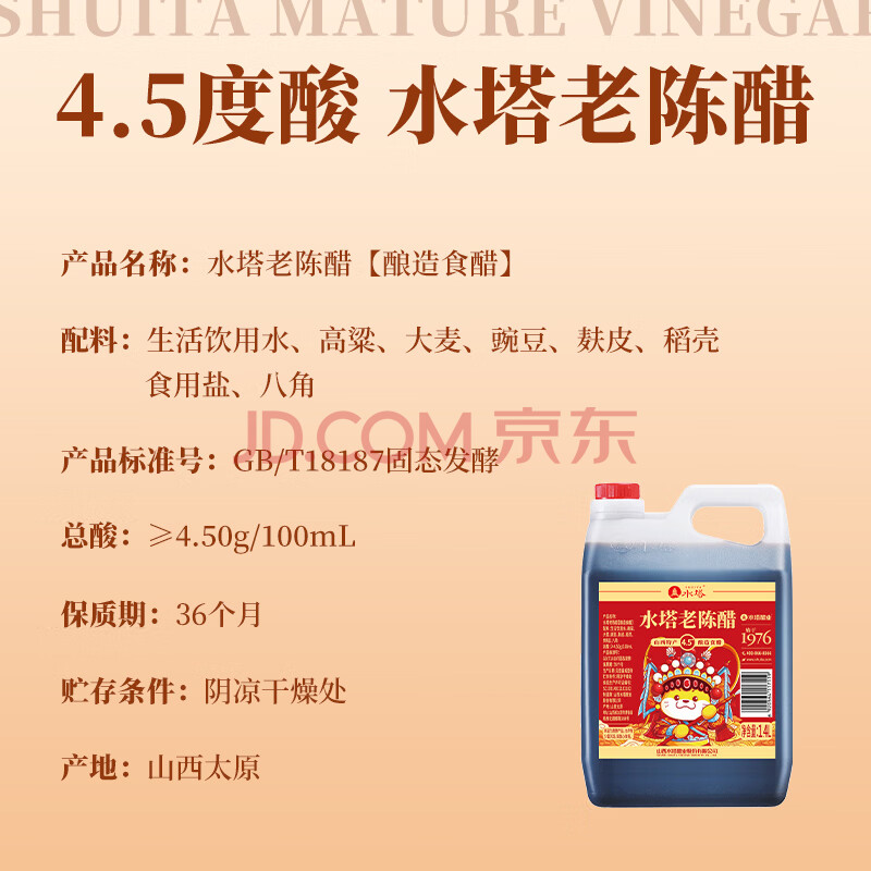 商品相册:水塔老陈醋4.5度1.4L山西醋 凉拌调味饺子蘸料第