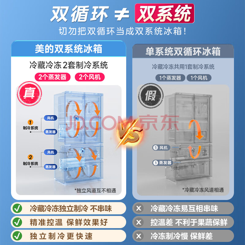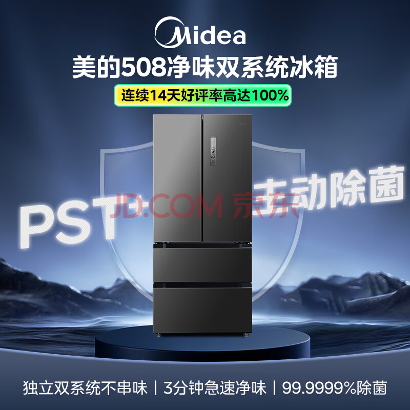 商品相册:美的(Midea)508L法式四开门冰箱双系统循环一级能效除菌净味风冷无霜大容量BCD-508WTPZM(E) 第