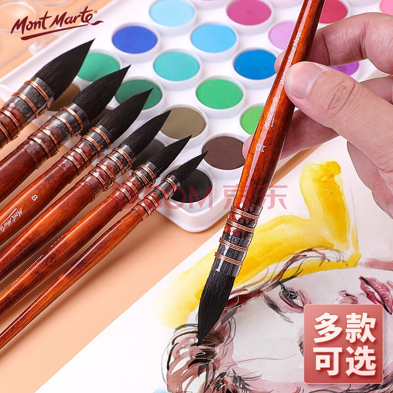 商品相册:蒙玛特(Mont Marte)水粉笔7支装 松鼠毛水彩画笔水彩画画笔美术颜料绘画笔 圆头排笔套装V SX-MPB0157-0163速写素描第