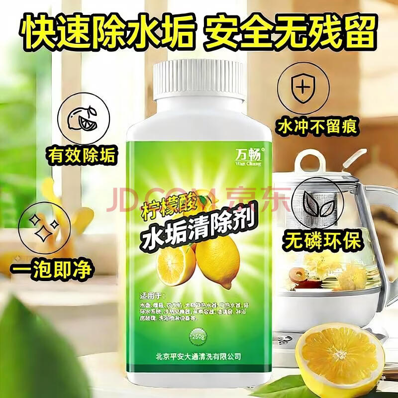 商品相册:平安大通 柠檬酸除垢剂250g茶垢清洁剂饮水机电热水壶水垢清洁第
