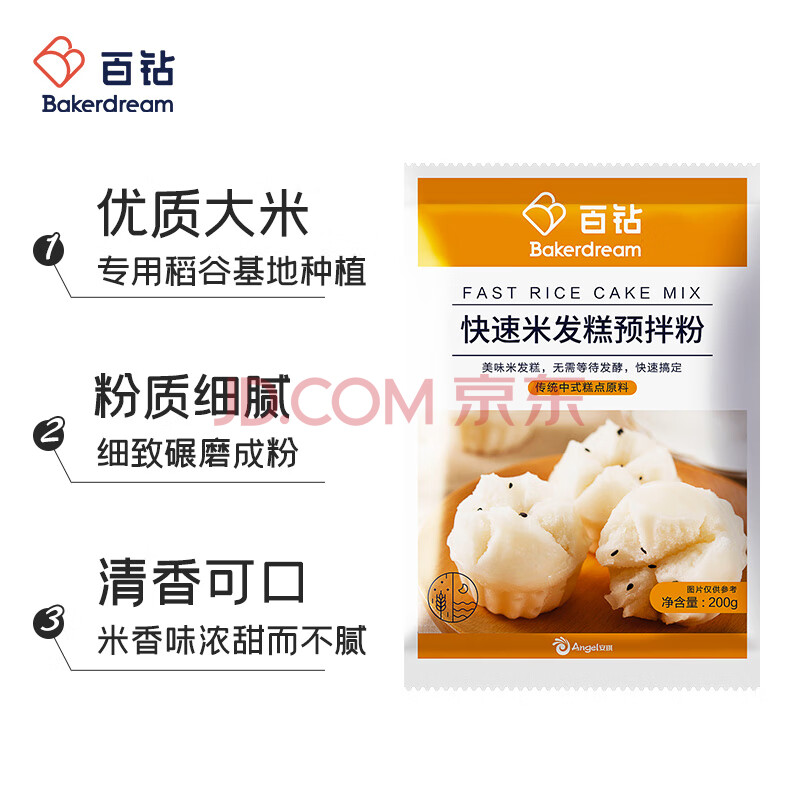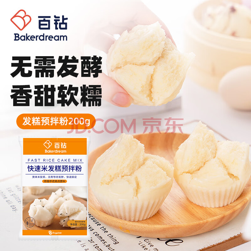 商品相册:百钻快速米发糕预拌粉200g 早餐家用自制米馒头大米糕发糕粉烘焙原料第