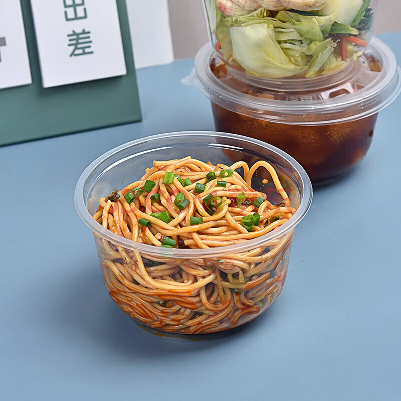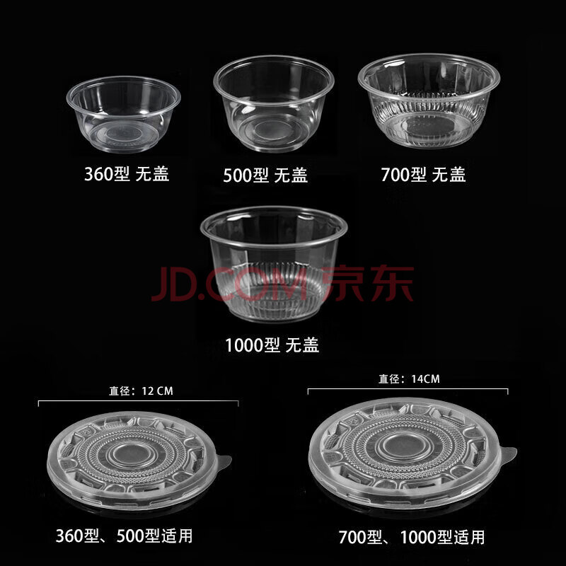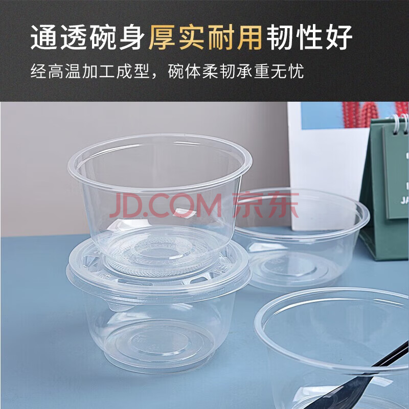 商品相册:特美居一次性碗圆形餐碗透明塑料碗耐高温饭盒食品汤碗不带盖500型300只第1张/共7